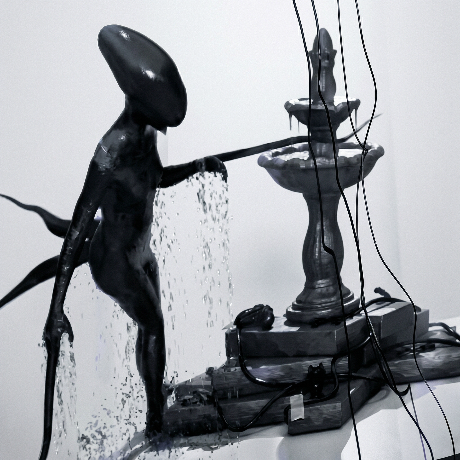 Инсталляция представляет спроектированную среду, в которой физические и виртуальные элементы обнажают механизмы взаимодействия человека и ИИ. С одной стороны, современные нейросети демонстрируют ограниченное понимание контекста, неспособность корректно визуализировать даже знаковые произведения искусства. С другой — они эффективно осваивают и комбинируют художественные стили, экстремально автоматизируя производство искусства и создавая новую модель распределенного авторства. Инсталляция включает систему захвата движений, воплощая физику в виртуальных аватаров с частично автономным поведением, метафорически демонстрируя, как при взаимодействии с ИИ ботами возникают процессы, чья логика часто остается за пределами понимания.